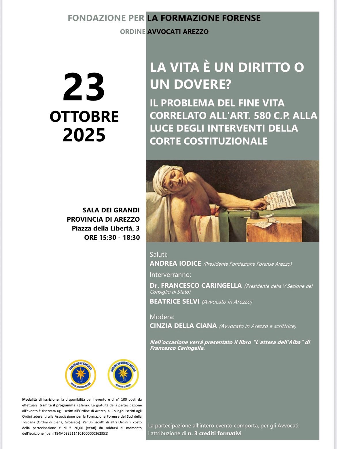 Lo scoprirete durante l’evento che ho l’onore di moderare e che vede gli interventi della stesso Scrittore Magistrato (Presidente della V Sezione del Consiglio di Stato) e della Collega Beatrice Selvi dopo i saluti del Presidente della Fondazione Forense Arezzo Avvocato Andrea Iodice
